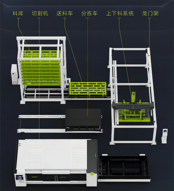 傳統(tǒng)切割機(jī)需要頻繁進(jìn)行上/下料、板材定位、運(yùn)輸倉儲等操作,