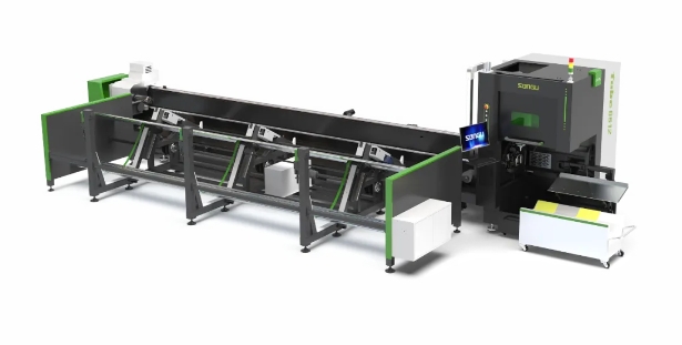 龍門式橫梁結(jié)構(gòu),高動(dòng)態(tài)性能,高剛性,切割精度高,穩(wěn)定性好;標(biāo)配氣動(dòng)漸變凹輪輔助支撐,避免管材自重下垂,減小變形,提高切割精度;前卡避讓短尾料切割,實(shí)現(xiàn)更短尾料切割;全自動(dòng)潤滑系統(tǒng),定時(shí)自動(dòng)供油,無需人工干預(yù);模塊化設(shè)計(jì),可選配不同的上下料方式,根據(jù)客戶實(shí)際生產(chǎn)需求自由組合擺放。