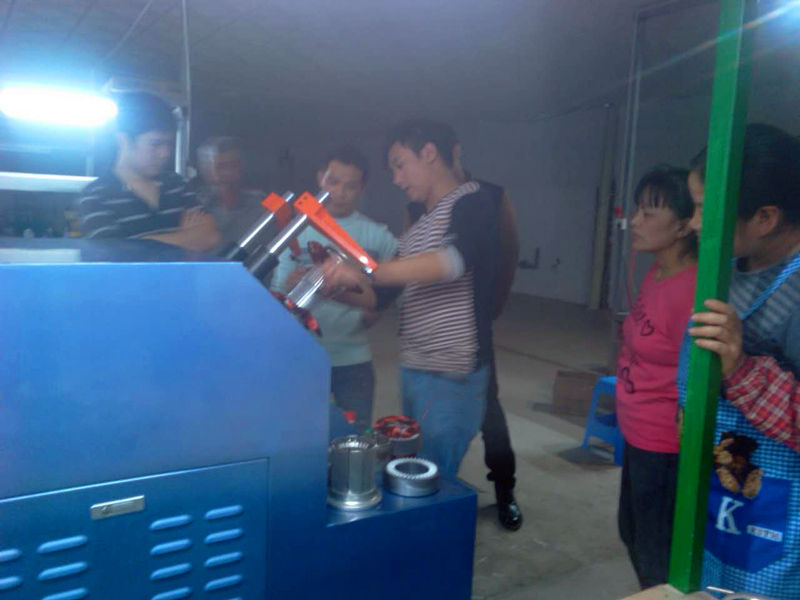 昨天,華源公司技術員到訪臺山客戶電機廠,進行嵌線設備的現場生產培訓。客戶也對嵌線機、定子初整機、綁線機、終整機一一進行了試產,效果也非常理想。